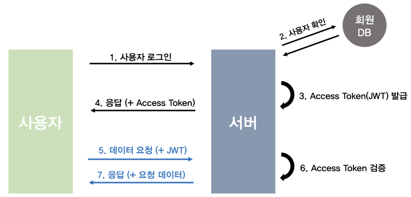 기본적으로 HTTP(HyperText Transfer Protocol) 통신의 특징은 접속 후 접속을 끊는 Connectionless(비 연결)와 상태정보를 보관하지 않는 Stateless(비 상태유지)이다. 그러므로 HTTP 요청시 이전 요청에 대한 정보와 무관하다. 그래서 로그인 기능을 사용하기 위해서는 요청 주체에 대한 '인증'이 필요하다. 이 인증을 통해 사용자 A와 B에 대하여 서버에서 클라이언트에 다른 화면을 보낸다.