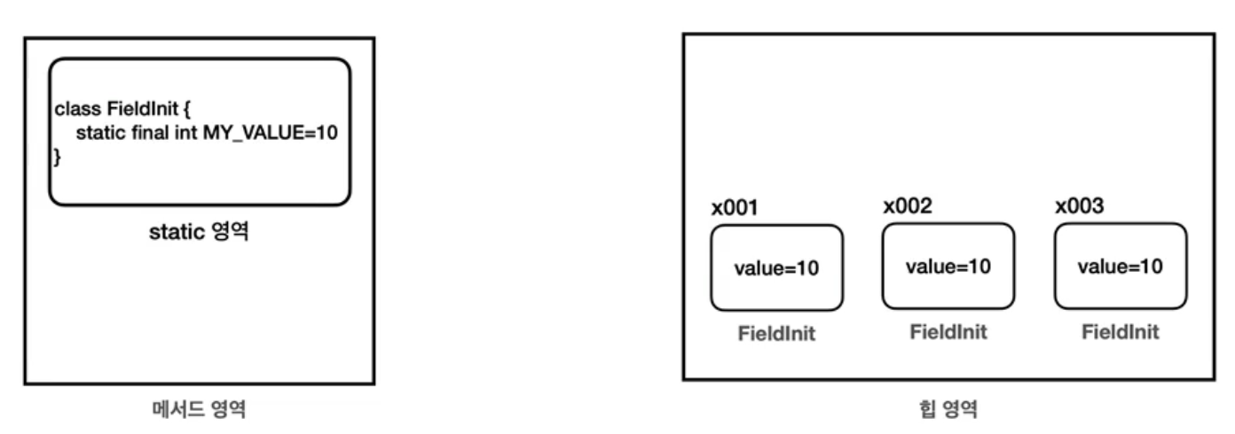 - static이 아닌 final 필드를 초기화 하는 경우 모든 인스턴스가 오른쪽 그림과 같이 같은 값을 가진다.