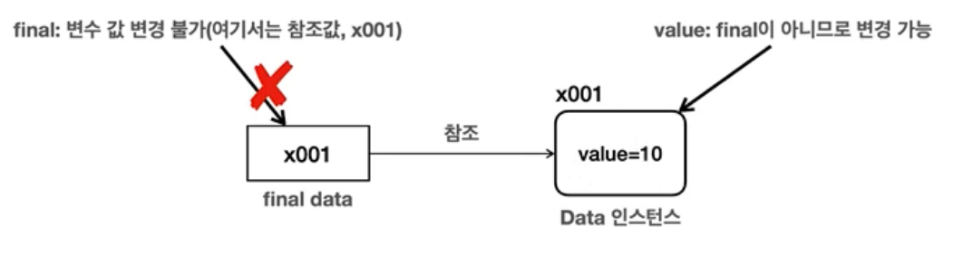 - final 변수에 기본값이 할당되면 변경 불가