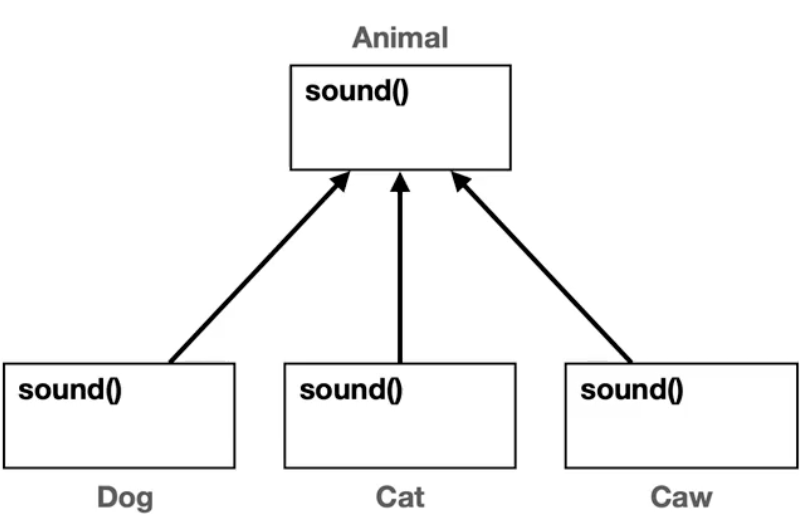 - 만약 JAVA에 메서드 오버라이딩이 없었다면 모두 Animal의 sound가 호출되었을 것이다.