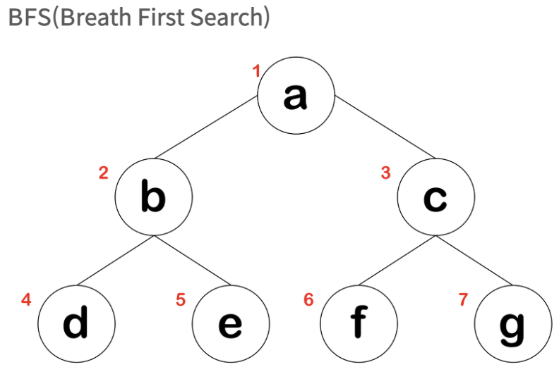 - 루트부터 시작하여 가까운 자식 노드들을 다 탐색 한다.