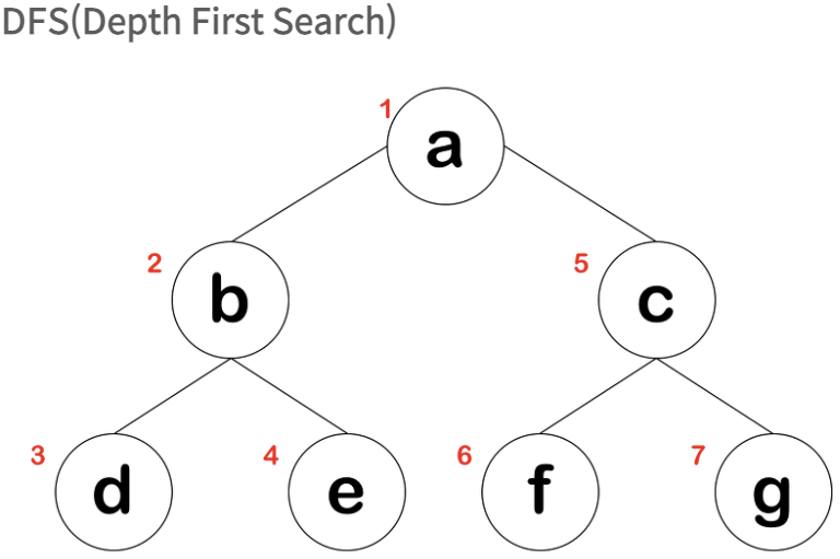 - 그 자식 노드들과 연결된 아래 자식노드들을 다 탐색한다.
