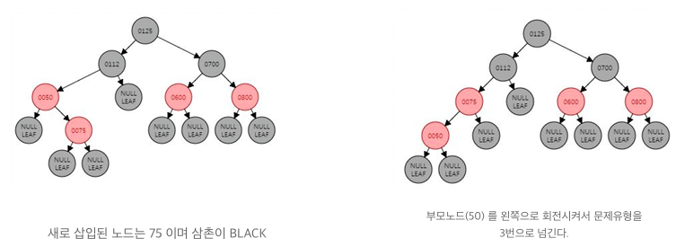 3) 삼촌은 검은색, 새로 삽인한 노드가 부모노드의 왼쪽 자식인 경우