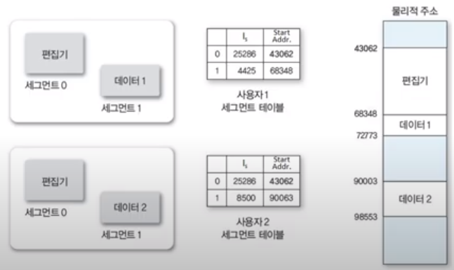 프로그램을 논리 단위로 분할(segment) / 메모리를 동적으로 분할