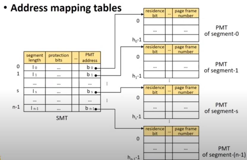 - Associative mapping(TLB, Translation Look-aside Buffer) - PMT를 위한 전용 하드웨어, 병렬로 서치하여 매우 빠름, 비쌈