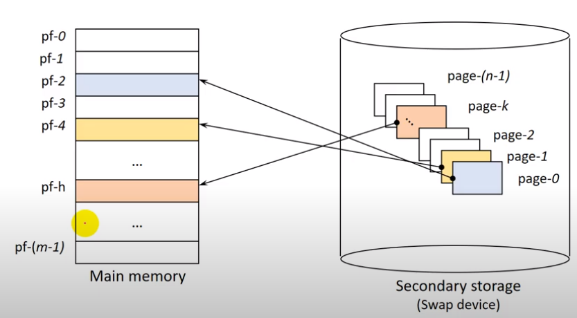 - 실행 시, 필요한 block들만 메모리에 적재, 나머지는 swap device(가상 메모리)에 존재